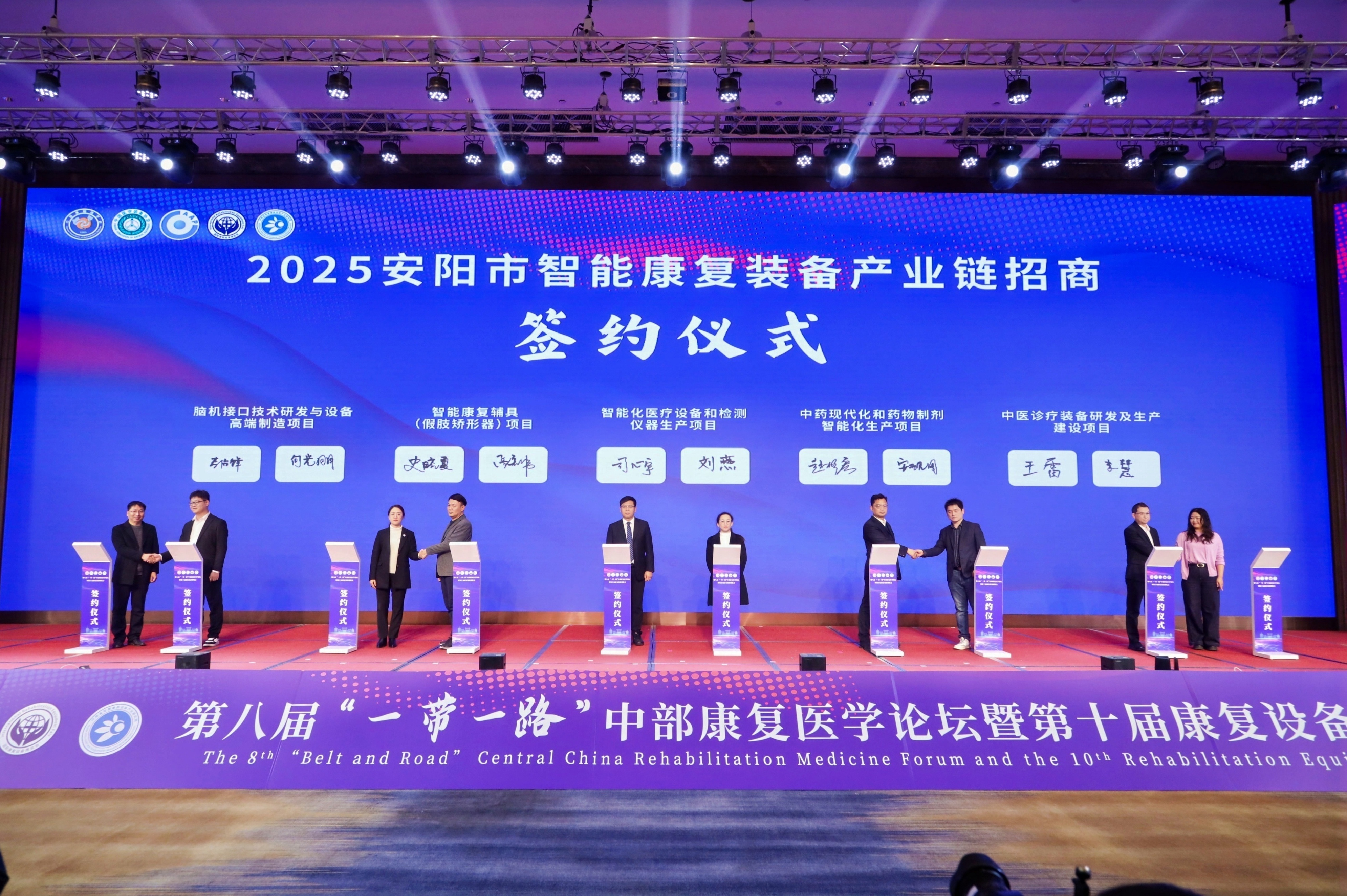 随着现场“共建智慧康养新高地,共创银发经济新蓝图”三省七市战略合作框架协议签署仪式顺利举行,安阳市、邯郸市、开封市、濮阳市、鹤壁市、新乡市、长治市等地民政局携手合作,将在资源共享、技术协作、产业联动、人才交流等方面深化合作,为区域智慧康养产业协同发展注入强劲动力。产业招商同步发力,2025年安阳市智能康复装备产业链招商签约仪式顺利举行。聚焦于智能康复辅具、脑机接口技术研发与设备高端制造、中药现代化和药物制剂智能化生产、智能化医疗设备和检测仪器生产、中医诊疗装备研发及生产建设等五大关键领域的重点项目完成签约,将有效整合产业链上下游资源,开启安阳市智能康复装备产业集群发展的崭新篇章。