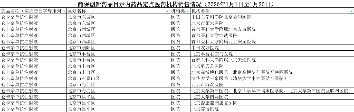 商保创新药品目录内药品定点医药机构销售情况(2026年1月1日至1月20日).xlsx