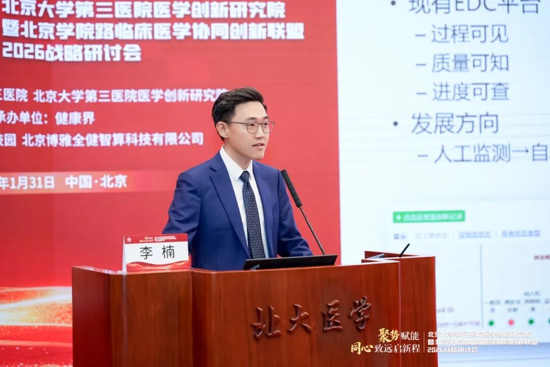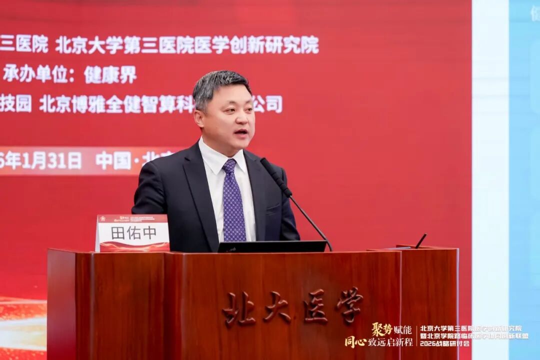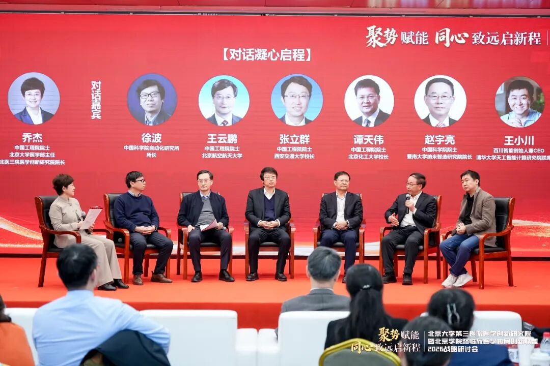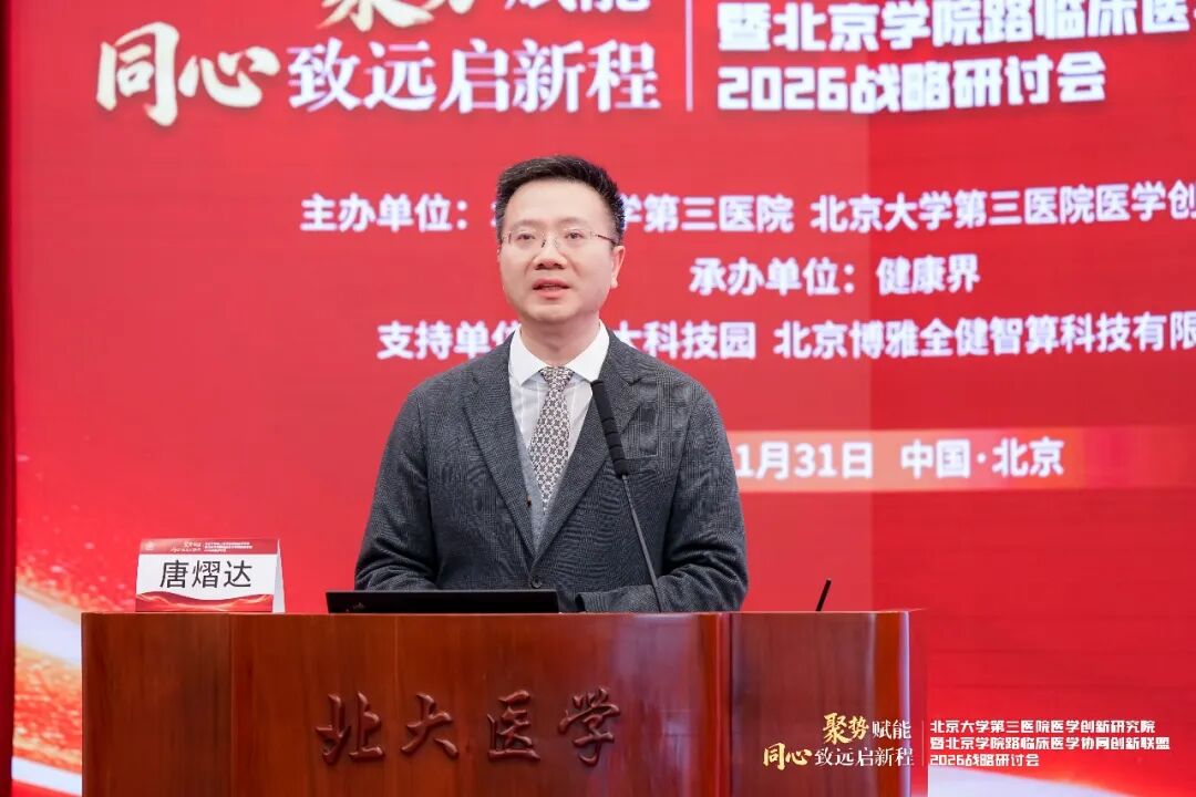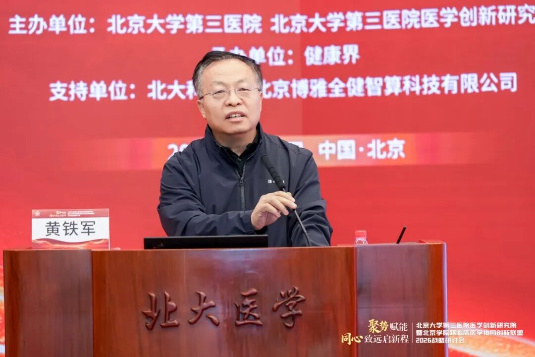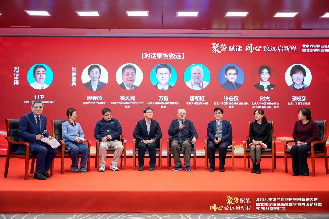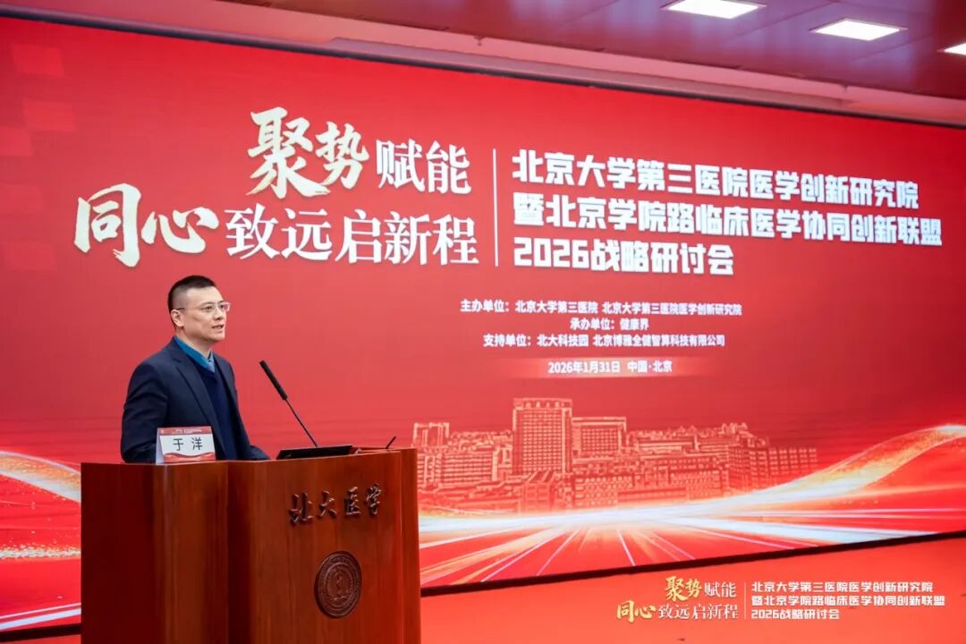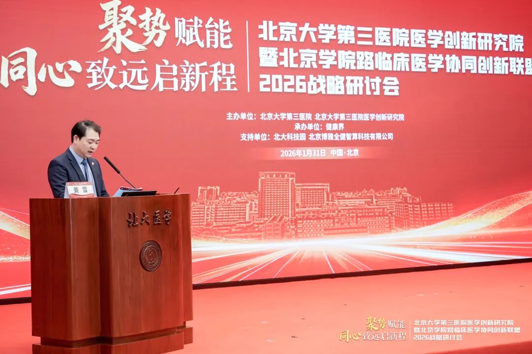 2026年1月31日,由北京大学第三医院(以下简称“北医三院”)、北京大学第三医院医学创新研究院主办,健康界承办的北医三院医学创新研究院暨北京学院路临床医学协同创新联盟2026战略研讨会在北京大学医学部顺利召开。会议以“聚势赋能,同心致远启新程”为主题,汇聚了顶尖科学家、临床专家及行业领军人物,就医学创新AI赋能、细胞治疗、医工融合、复合型人才培养等核心议题展开深入的主题分享与圆桌讨论。旨在立足医疗机构科技发展视角,系统梳理“十四五”期间北医三院的科研布局与创新成果,深入研讨面向未来的医学科技创新布局与协同路径,擘画未来发展战略。