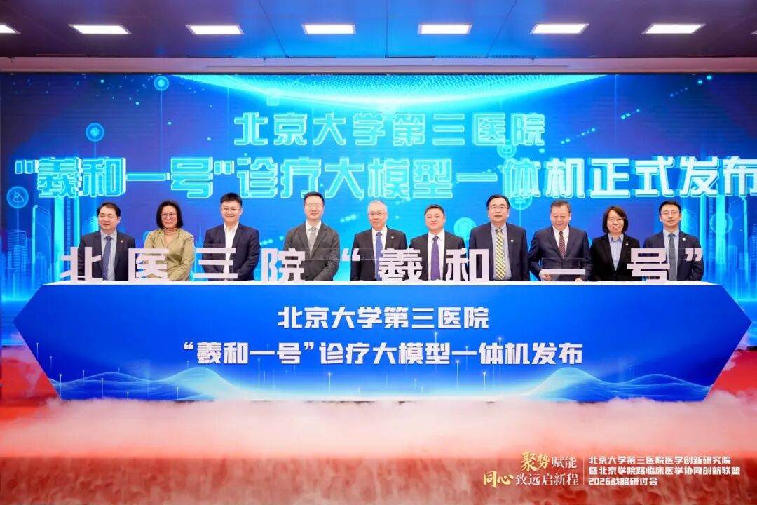 开幕式现场,由北京大学第三医院、北京大学人工智能研究院与博雅智算联合研发的“羲和一号”诊疗大模型一体机正式发布。“羲和一号”诊疗大模型是千亿级参数、基于百万真实病案数据的医疗AI基础模型,已在疾病预测、诊断、影像分析等多场景验证应用。不仅可以极大程度缩短疾病预警时间,降低首诊误诊率,还能够通过跨区域、跨机构的数据互动,结合AI可穿戴设备的实时数据传送与分析,让患者在黄金救治期内获得更多生存与康复机会。“羲和一号”的发布正值全球医疗智能化升级与“健康丝路”国际合作深化关键阶段,其发布与传播旨在凸显其产学研融合典范价值,兼顾国家医疗AI战略引领与商业市场影响力,推动技术成果向全球医疗实践转化。