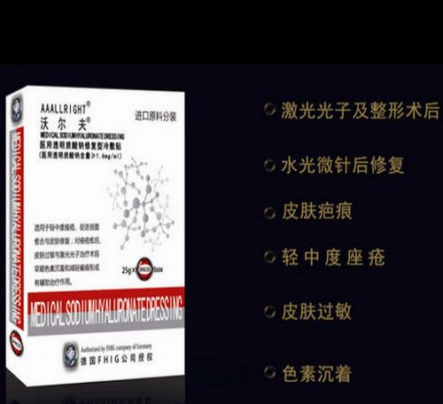 医用透明质酸钠(HA)是一种酸性粘多糖,医用透明质酸以其独特的分子结构和理化性质在机体内显示出多种重要的生理功能,如润滑关节,调节血管壁的通透性,调节蛋白质,水电解质扩散及运转,促进创伤愈合等。医用透明质酸是一种多功能基质,医用透明质酸(玻尿酸)HA广泛分布于人体各部位。人体皮肤含有大量的透明质酸。人类皮肤成熟和老化过程也随着透明质酸的含量和新陈代谢而变化,它可以改善皮肤营养代谢,使皮肤柔嫩、光滑、去皱、增加弹性、防止衰老,在保湿的同时又是良好的透皮吸收促进剂。