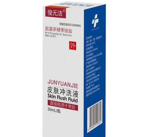 产品结构:俊元洁氨基多糖季铵盐皮肤冲洗液由氨基多糖季铵盐溶液和冲洗器组成。氨基多糖季铵盐溶液是阳离子型高分子电解质非抗生素类杀菌剂,无耐药性,能显著抑制和杀灭皮肤表面的金黄色葡萄球菌、白色念珠菌等常见致病微生物,同时促进伤口的愈合,预防或消除炎症,加速病变部位恢复。