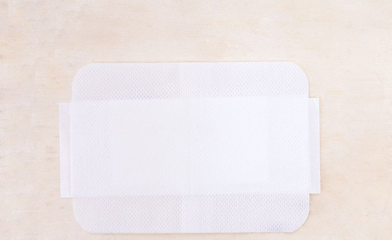 结构组成:产品由基材(无纺布、聚乙烯膜、聚氨酯膜、弹性布、棉布),涂以医用压敏胶,并复合吸水垫(由无纺布及隔离网膜制成)和隔离纸(表面经防粘处理的离型纸)制成。