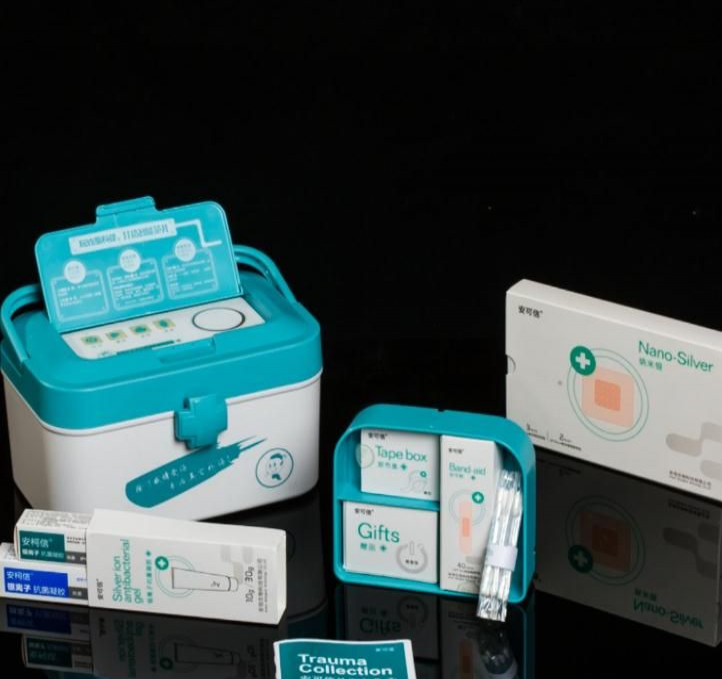 本产品以银抗菌产品组合与智能化集成服务产品组合而成,在神奇的纳米银产品基础上,通过互联网新技术(AR、NFC、智能语音交互等),针对家庭常见外伤、家庭常见感染及炎症、家庭常见顽固性疑难杂症,提供全方位治疗指导方案、在线咨询指导、与在线康复咨询,旨在为家庭外伤与感染康复提供一站式解决方案。
