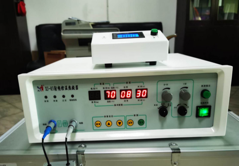 XJ-03射频控温热凝器是治疗关节,椎间盘等骨关节类疾病治疗仪中的其中一款。该设备的治疗原理:借助射频控温热凝器到达射频热凝靶点区域后使用电刺激功能及阻抗监测系统,将射频针准确放置到发病部位,通过调解射频输出功率的大小、设置作用温度,精确控制损伤灶的范围,即只是用一根直径为0.8mm特制穿刺针在数字影像或CT的监视下准确地穿刺到椎间盘突出部位的中心,再用直径0.4mm射频电极放入穿刺针内进行一系列安全测试,确认安全后,直接热凝温控治疗促使突出的椎间盘组织细胞内分子运动摩擦生热,致使突出部分的间盘组织织变性、凝固、收缩、减少体积,从而解除对神经的压迫,但不伤及正常的椎间盘组织和周围神经。