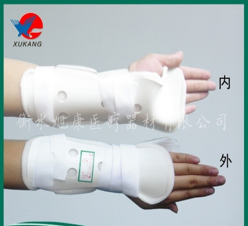 使用范围:主要适用于挠骨骨折、复位固定,挠骨软组织损伤、韧带损伤等固定,此产品有重量轻、透气性好,调节方便等优点。