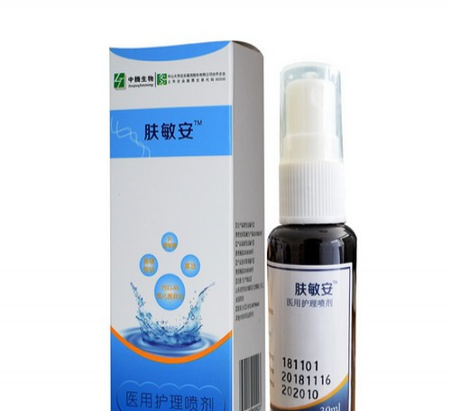 - 肤敏安皮肤过敏喷雾剂(医用护理喷剂)对外源性过敏导致的皮肤红肿、破损,起到物理阻隔保湿修复作用。适用人群:1.过敏人群;2.面部红血丝;3.皮肤红肿、破损等。