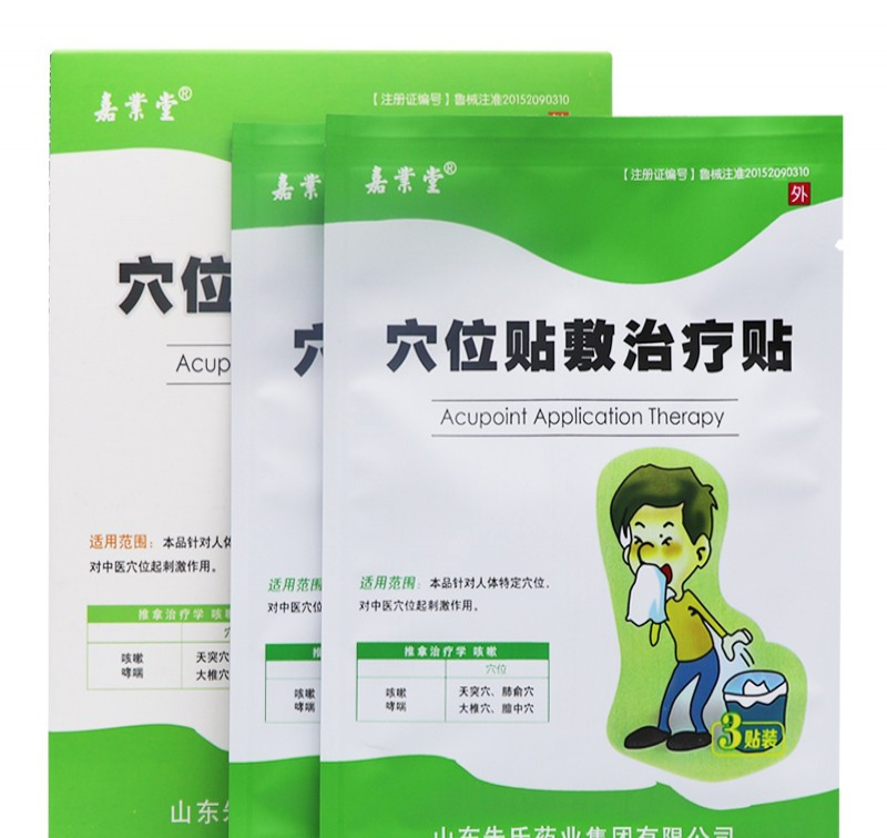 贴敷穴位:主穴位:膻中、肺腧;辅穴位:天突、定喘。