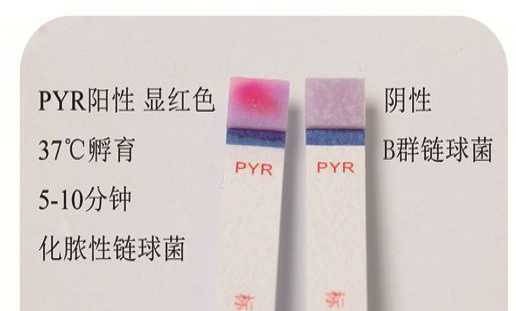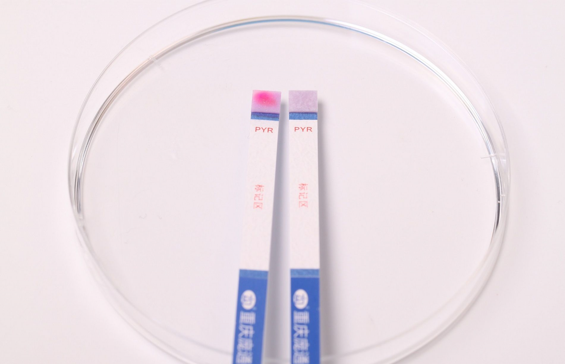 吡咯烷酮试验试剂(PYR):利用细菌具有特异性的吡咯烷酮酶,作用于吡咯烷酮发生生物、生化反应,使其水解,产物显色;