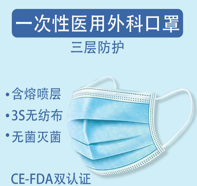 【适用范围】供临床医务人员在有创操作过程中佩带,覆盖住使用者的口、鼻及下颌,为防止病原体微生物、体液、颗粒物等的直接透过提供物理屏障。