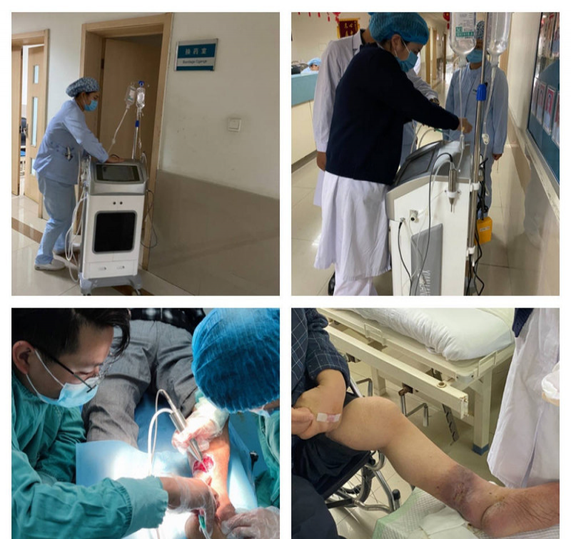 &能激活纤维细胞,促进纤维蛋白层的合成,改善伤口环境,促进伤口愈合。 &清创时根据伤口面的深浅,适当调整枪头与伤口清创面的距离,可达到普通清创器械不能到达的部位,实现彻底清创。
