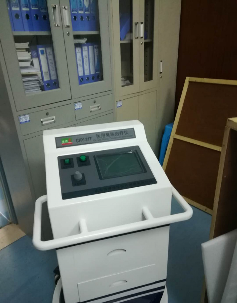 5、臭氧催化分解装置:采用恒温除湿、自修复式、免维护型臭氧催化分解装置,可将臭氧高效还原为氧气后排出,确保治疗环境空气洁净,达到国家《GB/T 18202-2000室内空气中臭氧卫生标准》(国内外对臭氧环境浓度要求zui高的标准),确保在治疗过程中医务人员和患者的健康安全。
